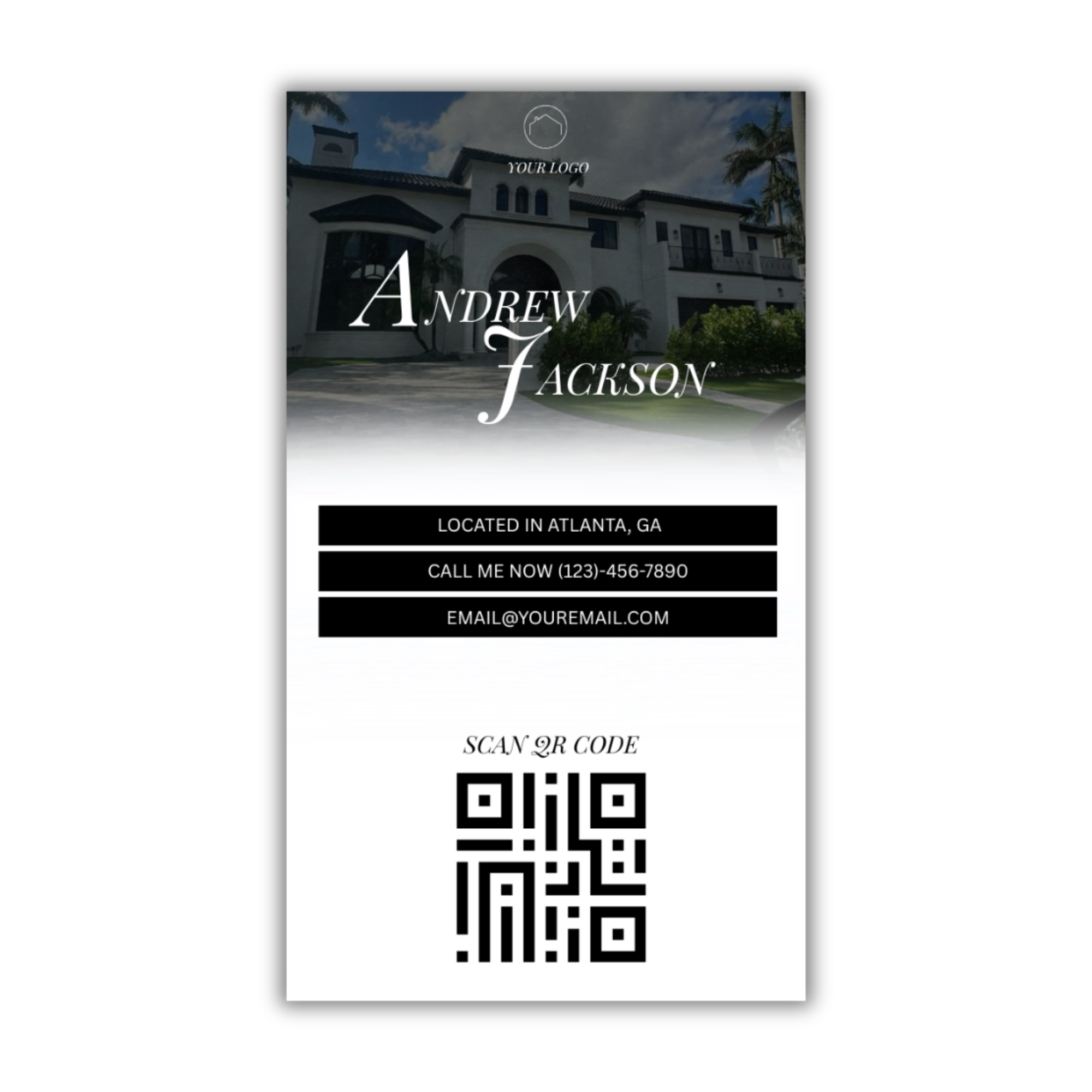 Customize with your logo, contact info, photo, and QR code
